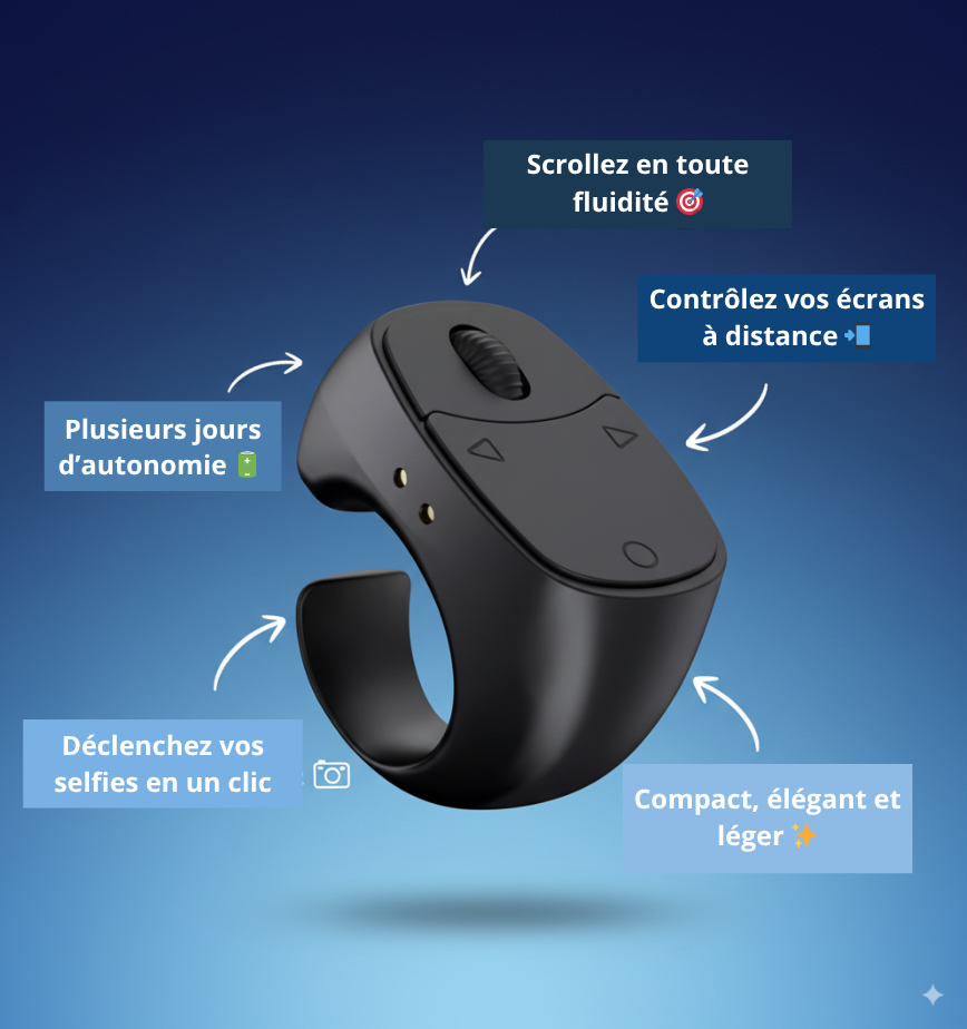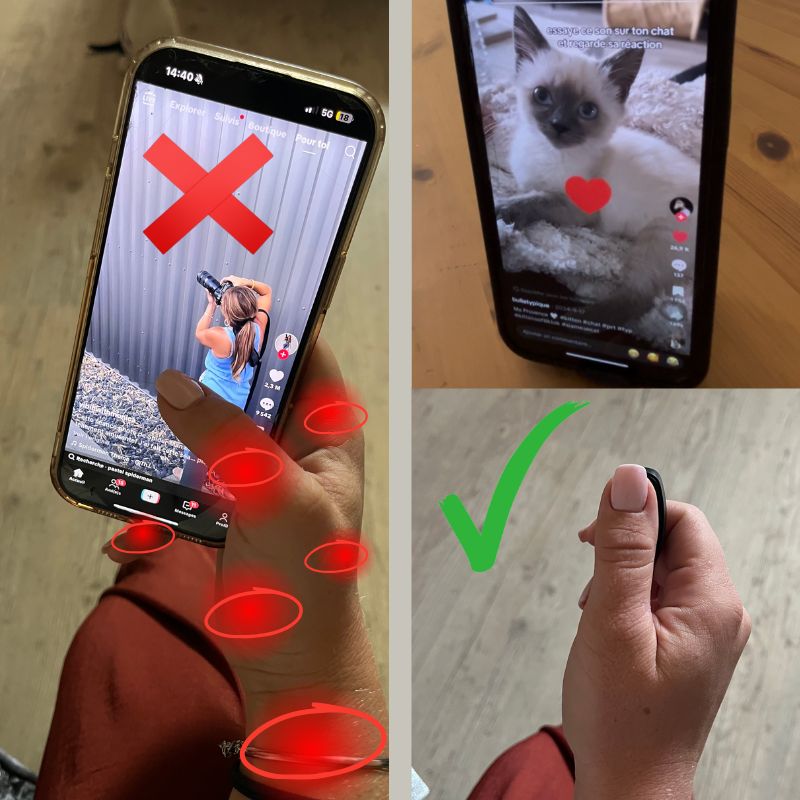 Une télécommande sans fil compacte : faites défiler les pages, vidéos tiktok, e-books, photos, musiques, selfies d'un simple geste, sans toucher votre écran.